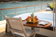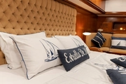 With a capacity to host a total of 10 guests in five cabins, Estrella De Mar offers one master cabin, two double cabins, and two twin cabins. Each cabin is equipped with luxuries such as high-quality interior design and private bathrooms. Wood craftsmanship and elegant details stand out in the yacht's interior design.