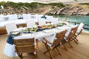 With dining areas in the open and closed sections, decks filled with sunbathing cushions, and sea toys, Estrella De Mar offers everything you need for an incomparable vacation. This yacht, where you will feel special during your blue cruise, is ideal for those who want to make a luxurious getaway on the sea.
