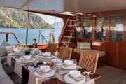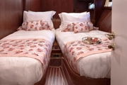 KAFTAN, with a capacity of 4 cabins, provides comfortable accommodation for a total of 8 guests with 1 Master, 1 Double, and 2 Twin cabins. Each cabin boasts tasteful decor and a private bathroom, offering guests a private and comfortable space alongside sea views.
