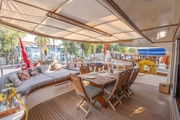 The crew of 4 is experienced and professional, attending meticulously to all the guests' needs to ensure an unforgettable maritime holiday experience. The excellent service provided throughout the day is complemented by amenities designed for enjoying every moment. The yacht's interior design features wooden details and contemporary decorative elements, offering guests an atmosphere that is both classic and modern.