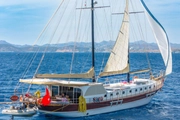 LIFE IS LIFE is a gulet yacht, elegant in design and offering expansive living spaces at a length of 23.6m. Constructed in 1996 and refurbished in 2021 to accommodate modern necessities, this impressive yacht can host up to 10 guests across its five cabins, comprising a master cabin, two double cabins, and two twin cabins.
