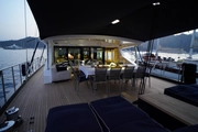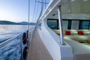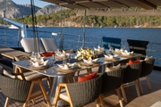 With every detail thoughtfully considered, you can enjoy your dinner on the spacious deck accompanied by the breathtaking views of the Aegean or the Mediterranean. The modern and elegant interiors, the yacht's comfortable lounges, and spacious cabins exceed the expectations of those seeking perfection.