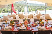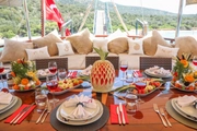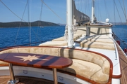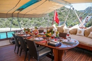 Providing all the amenities necessary for an exquisite sea holiday, ULUCINAR dazzles with its appearance following refurbishment works completed in 2022. Each cabin offers meticulously considered comfort and elegance, accompanying you at every moment. The spacious deck areas, where you can enjoy the sun, feature stylish tables and comfortable seating groups.