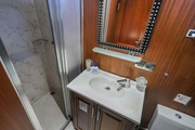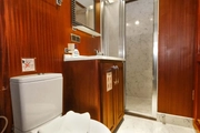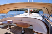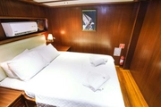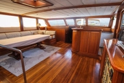 As you set sail on the blue waters, a professional crew of 3 is at your service to provide a unique experience. The design, which prioritizes the comfort of the guests, impresses with its interiors dominated by elegant woodwork, while its spacious deck is tailor-made for those wanting to enjoy the sun and the sea.