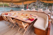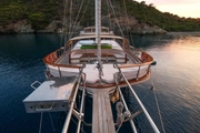 Witnessing the graceful glide through the seas, BABA VELI 9 combines traditional gulet design with modern comfort. This magnificent yacht, measuring 30 meters in length, was built in 2013 and has since been designed with every detail carefully considered for the comfort of its guests. Capable of accommodating a total of 12 guests in 6 spacious cabins, BABA VELI 9 is an ideal choice for those wanting to collect unforgettable memories on the sea.