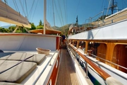 Meet the dazzling "Dear Lila," anchored in the crystal waters of the sea. This elegant gulet, which is 30 meters in length, was launched in 2012 and underwent a complete renewal in 2019 With six stylish cabins, including 2 master, 2 double, and 2 triple, it has the capacity to accommodate a total of 12 guests.