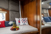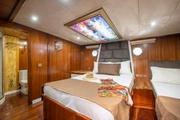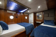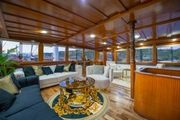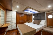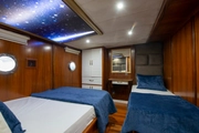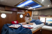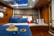 It offers accommodation for up to 16 people across 8 cabins, including 6 Double Cabins and 2 Twin Cabins. Each cabin features a modern and elegant decoration design, comfortable beds, and a private bathroom. The design of the cabins stands out for its good taste and functionality.