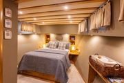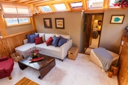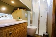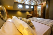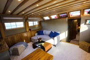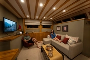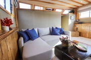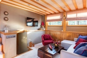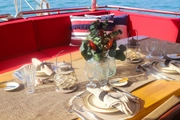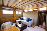 The interior of Le Rouge promises an elegant and warm atmosphere. Its modern and comfortable lounge, with cozy sofas and tables, creates an ideal environment for socializing or relaxation. Wood accents and soft colors evoke a sense of home comfort within the yacht.