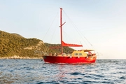 Le Rouge answers the call of the blue waters, offering an unforgettable experience to sea enthusiasts. Built in 2020, this elegant gulet stands out with its striking design, stretching 16.8 meters in length. Throughout your blue voyage, a crew of 3 members is ready to provide you with a five star service.