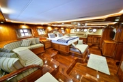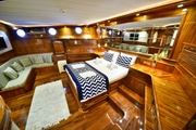 The "Queen Atlantis" stands as a regal presence on the seas, a magnificent 36-meter masterpiece where traditional gulet design meets modern comfort. Launched in 2014, this splendid vessel offers an unforgettable voyage for 16 guests across its 8 luxurious cabins. During your blue cruise, you'll experience the warmth of woodwork alongside the endless blue of the sea, with 2 master suites, 4 double, and 2 twin cabins at your disposal.