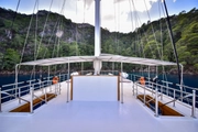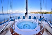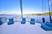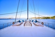 The yacht's expansive deck provides the perfect spot for sunbathing under the radiant sun. At night, it transforms into a serene retreat where you can unwind with a refreshing cocktail under the stars, embracing the tranquility that "Queen Atlantis" offers. The professional 5-member crew ensures every detail is catered to, allowing you to indulge in freedom and comfort throughout your stay.