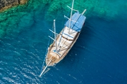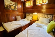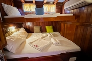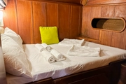 For those who dream of setting sail into the blue, V-GO is a 26 meter long elegant gulet that offers a perfect blend of comfort and style. Built in 2009 and refurbished in 2018, this vessel combines modern amenities with classic lines to provide a comfortable sailing experience. Capable of accommodating up to 17 guests in its eight cabins, V-GO offers a range of sleeping arrangements with 3 double cabins, 3 triple cabins, and 2 twin cabins, catering to various group needs.