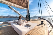 Its spacious deck offers a perfect setting for accumulating unique memories on your blue voyage, leaving you alone with the enchanting beauties of the Aegean and Mediterranean. With a professional crew of 5, GETAWAY adopts a service philosophy where every detail is considered, ensuring your time on board is memorable.