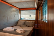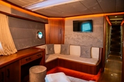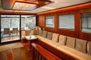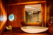OGGUSTO's open deck offers the perfect environment to relax and enjoy the sun against a backdrop of unique vistas. The wide living spaces, adorned with eye-catching wood details, create an atmosphere that combines a passion for the sea with comfort. This elegant yacht, where you will create special moments with your family and friends, awaits to help you collect unforgettable memories.