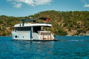 Are you ready for a unique voyage on the seas? OGGUSTO, a graceful Trawler yacht built in 2023, measures 22 meters in length. It has been meticulously designed to host its guests, with a spacious interior and 4 luxurious cabins. It can comfortably accommodate up to 8 guests, including a Master Cabin and 3 Double Cabins. With its modern design and exquisite woodwork, OGGUSTO is the ideal choice for those heeding the call of the blue waters.