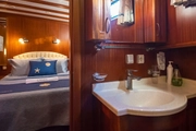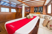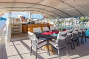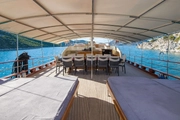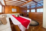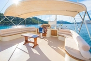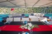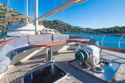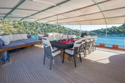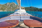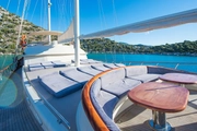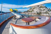 Featuring a spacious deck, Cagan is specially designed for those who want to bask in the sun and enjoy the view of the sea. The open-air dining area at the rear of the yacht provides the perfect setting to enjoy dinner against the backdrop of the Aegean's cool waters.