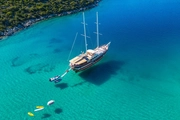 Cagan promises boundless freedom on the blue seas. This gulet, built in 2015, is 31 meters in length and can comfortably accommodate a total of 12 guests in its 6 cabins (2 x Master Cabin, 2 x Double Cabin, 2 x Triple Cabin). Ideal for large families or groups of friends, Cagan offers comfort and elegance together.