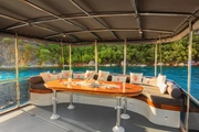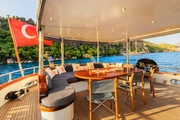 This yacht, offering comfortable accommodation for a total of 9 people in four spacious cabins, combines spaciousness and a warm atmosphere at the same time. Each cabin is equipped with a private bathroom and air conditioning system, providing guests with the opportunity to relax alongside a special sea view.
