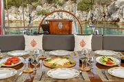Considered as your home on the sea, MIO VENTO provides you with special service with its professional crew of 5 people. The crew, from the experienced captain to the chef, is ready to do their best to make your trip perfect. A journey with this crimson pearl in the crystal waters of the Mediterranean awaits you.