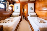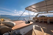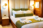The yacht’s spacious deck is equipped with open-air dining areas and sunbathing spots. Its wide and airy interiors are notable for their modern design and elegant decor. AQUILA is prepared with attention to every detail to offer an unforgettable holiday experience.