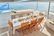 HIGH FIVE, with its wide deck and open dining areas, allows guests to fully enjoy outdoor dining. As you set sail on the azure waters, it offers a perfect environment to savor delicious meals with your friends under the Mediterranean sun. Luxury, comfort, and boundless fun await you at sea with HIGH FIVE.