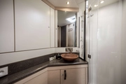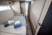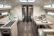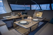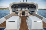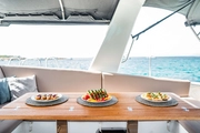 The deck of the yacht offers wide areas where you can comfortably sunbathe and relax. The outdoor dining area allows you to enjoy delightful meals with stunning views. The interiors are bright and spacious, furnished with elegant furniture. Comfortable seating areas and a fully equipped kitchen are designed to meet all the needs of the guests.