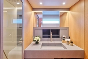 The new favorite of the seas, NADAMAS, showcases an impressive profile as a Sailing Yacht built in 2022, with a length of 23.99 meters. Offering a comfortable accommodation experience for 8 guests with its four double cabin design, this yacht stands out with its modern and stylish interior design. Each cabin has been thoughtfully equipped with all the amenities needed by guests, creating a spacious and functional living space.