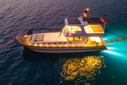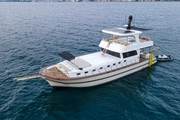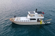 Dalibay 2 , a modern Trawler built in 2022, measures 13.5 meters in length and offers comfortable accommodation for 6 people across 3 Double Cabins. An ideal choice for sea enthusiasts, this yacht stands out with its elegant design and expansive living spaces.