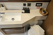 The interior of S/C SHANTI boasts a modern and bright atmosphere, with the capacity to accommodate up to 10 guests in 4 double cabins. Each cabin is carefully arranged and features an elegant design, offering both comfort and privacy for sea enthusiasts. The expansive living room and kitchen inside the yacht are designed to meet all your needs while at sea, making it your home away from home.
