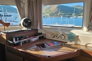 The free spirit of the seas, S/C SHANTI, is an impressive catamaran yacht launched in 2020. This elegant design, measuring 13.99 meters in length, offers a perfect combination of comfort and style. The spacious deck area provides ideal conditions for sunbathing and relaxing, making it a flawless choice for those wishing to enjoy the sea.
