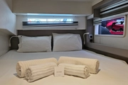 The 2023-made SAH MAT catamaran offers a perfect blend of freedom and comfort in the blue waters. Measuring 12.85 meters in length, this elegant yacht is ideal for families and groups of friends with its accommodation capacity for 6 people. It has 3 double cabins and a 2-person professional crew to meet all the needs of sea enthusiasts.