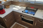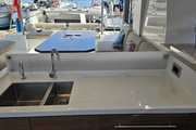 The open deck area offers a large space for those who want to sunbathe and enjoy the scenery. Integrated barbecue and outdoor kitchen facilities promise enjoyable dining experiences on the sea. Comfortable cushions and seating groups provide a comfortable social environment.