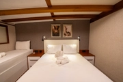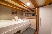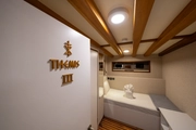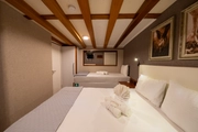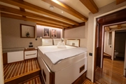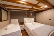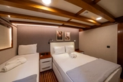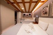 The elegant guest of the blue waters, BOREAS, combines traditional gulet design with modern comfort. This impressive yacht, measuring 43 meters in length, has 16 cabins; 10 of these are Master Cabins, 4 are Twin Cabins, and 2 are Quad Cabins, all designed to cater to the needs of its guests. Offering accommodation for up to 36 people, BOREAS is an ideal choice for creating unforgettable memories on the sea.