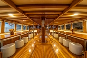 Having been renewed in 2023, BOREAS stands out with its wooden details and spacious living areas in the interior design. The rich seating groups and the large dining table in the lounge have been thoughtfully considered for the comfort of guests. Furthermore, the sunbathing and relaxation areas are tailor-made for those who want to enjoy the Mediterranean sun.