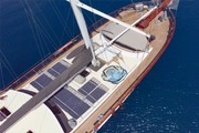 Meals prepared by experienced chefs are served on the spacious table of the aft deck, where Mediterranean flavors and exquisite samples of world cuisines await you. Comfortable chairs and tables create an ideal atmosphere for excellent outdoor dining.