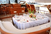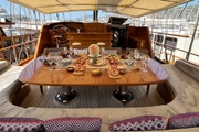 The open deck is equipped with chic dining areas and sunbathing zones, allowing guests to enjoy the Mediterranean sun and breathtaking views. In the midst of the sea, guests find the opportunity for a perfect gastronomic feast and a relaxing sunbath.