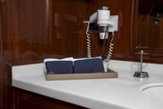 The interior is furnished in a modern and sophisticated style. With its spacious lounge and luxurious cabins each with an en-suite bathroom, Performance Fee is designed to provide all the comforts of home on the sea. Enjoy the luxury and comfort of your home on the waves with Performance Fee.