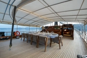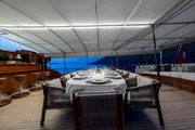 The expansive open deck areas are standout features of Performance Fee. The sunbathing and relaxation areas provide an elegant and comfortable setting for special moments while enjoying the sea and sun. Additionally, you can dine at meticulously prepared tables with a 360-degree sea view in the evenings.